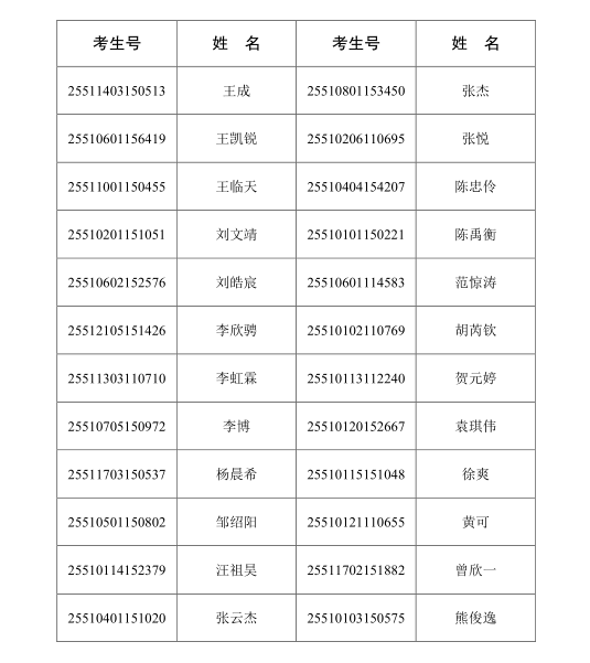 1.以上考核测试名单是根据四川考生志愿填报情况,按照“填报志愿优先、性别文理科单列、成绩由高到低”的原则和相应比例确定,以姓氏笔画从上至下、从左至右排序。